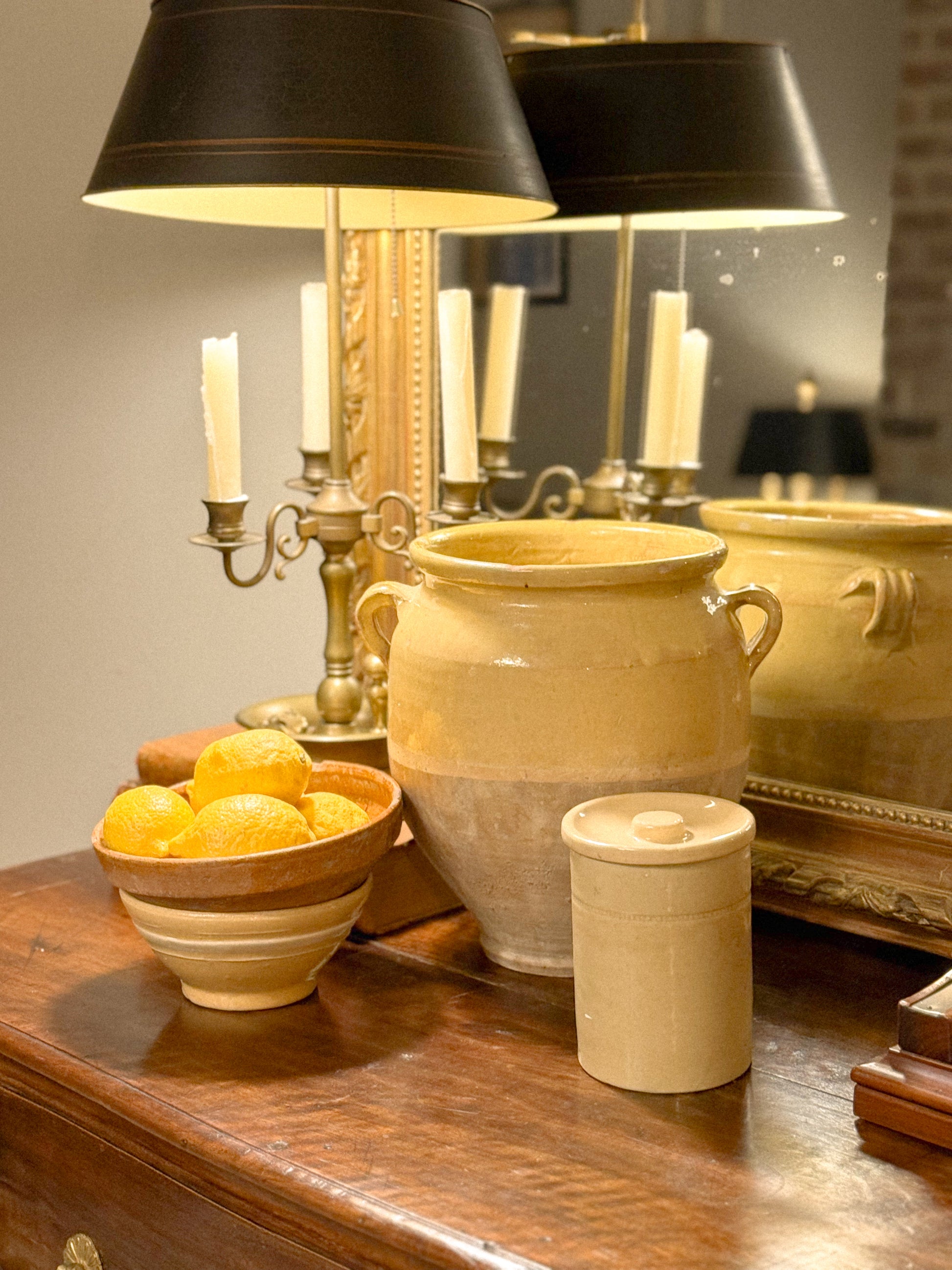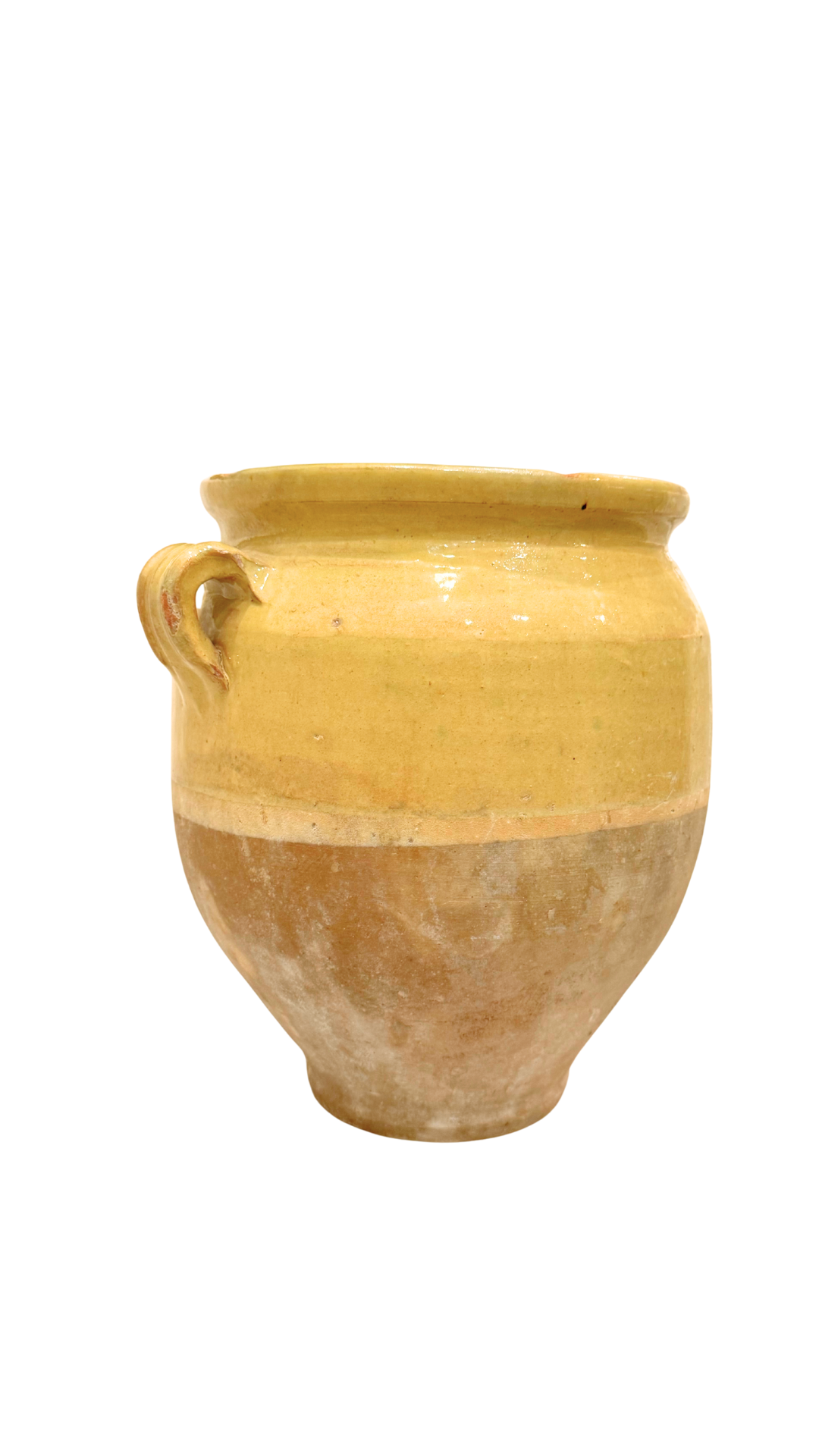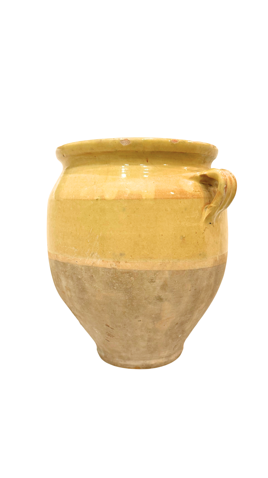 19th-Century French Confit Pot with Warm Pale Ochre Glaze