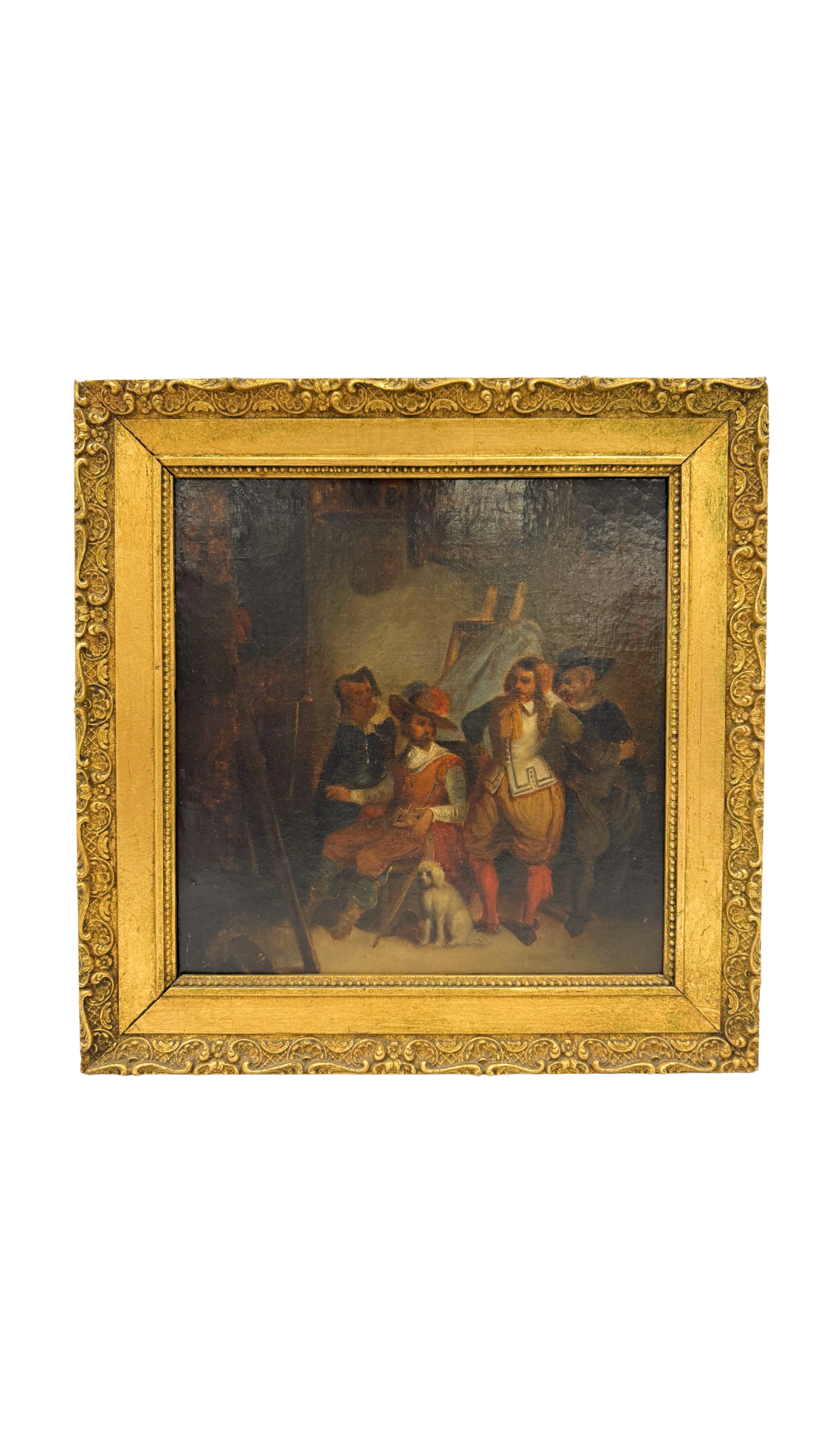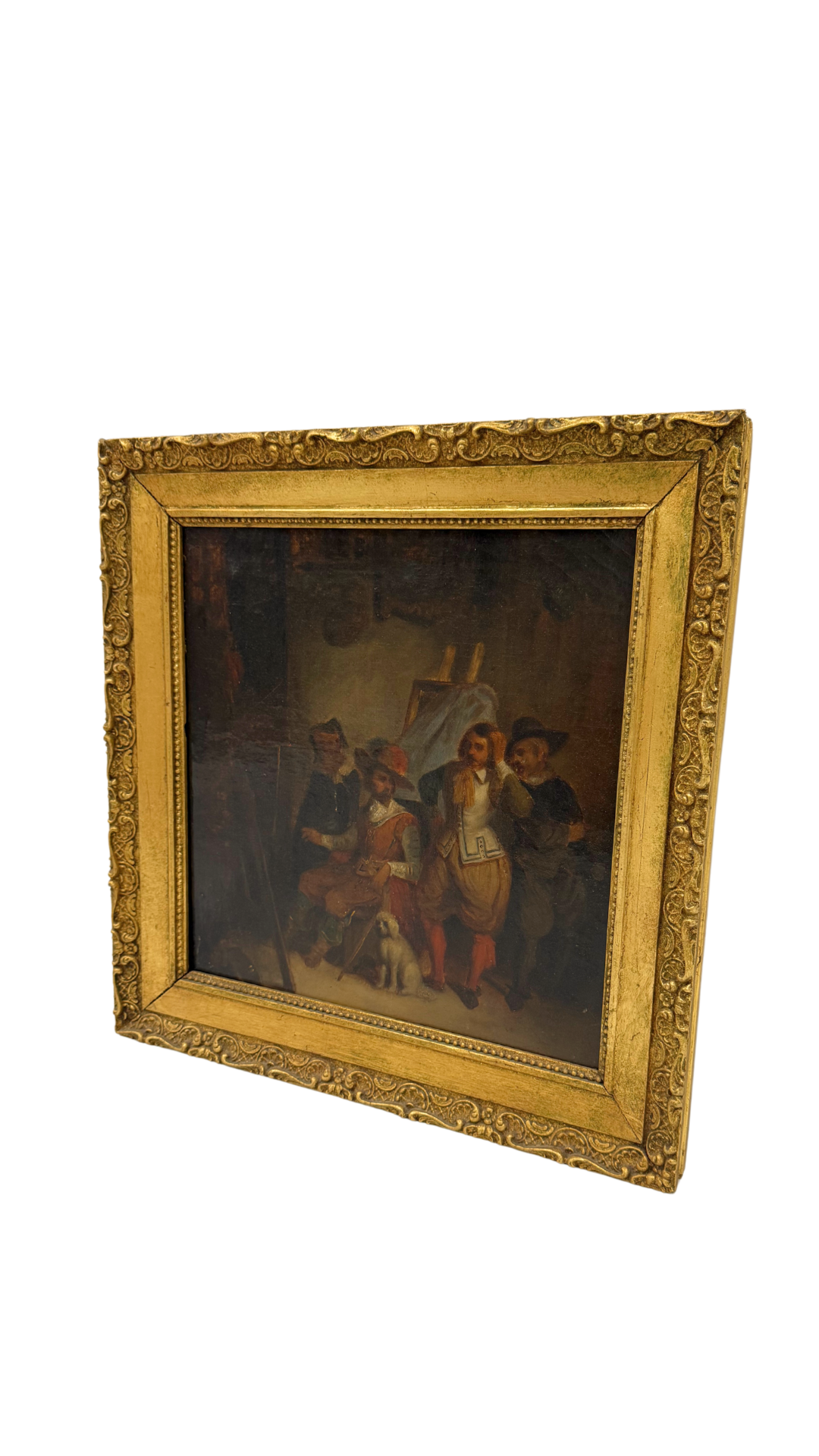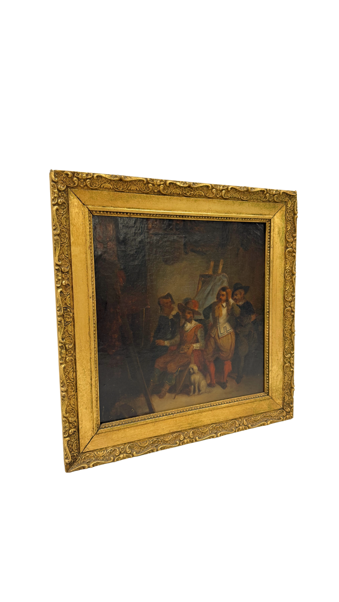 This painting by the Belgian painter Ferdinand Norbert Adrien, known by the first name “Adrien” de Braekeleer (1818-1904); it is a scene with “mousquetaires”