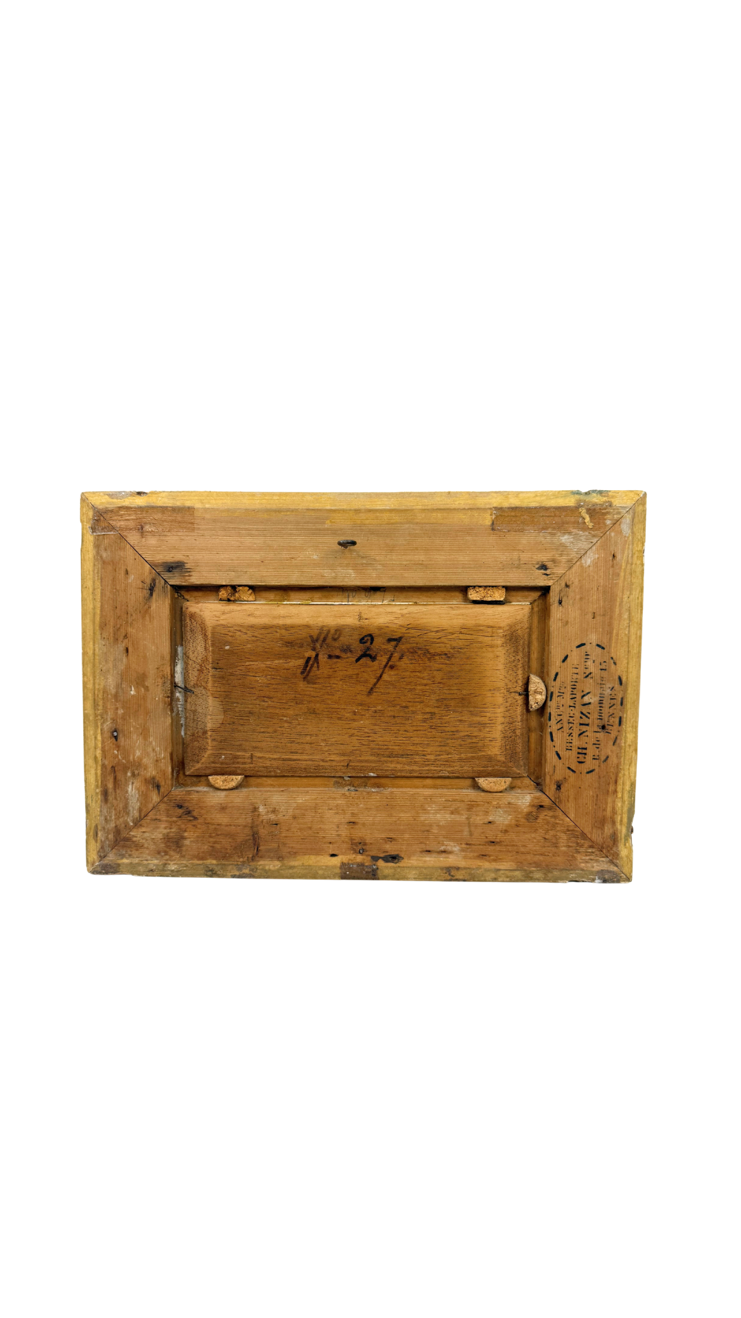 Executed on a wooden panel and housed in its original giltwood frame, the work retains a beautiful sense of authenticity. The back bears an old Parisian framer’s stamp, further anchoring its French provenance. Signed.