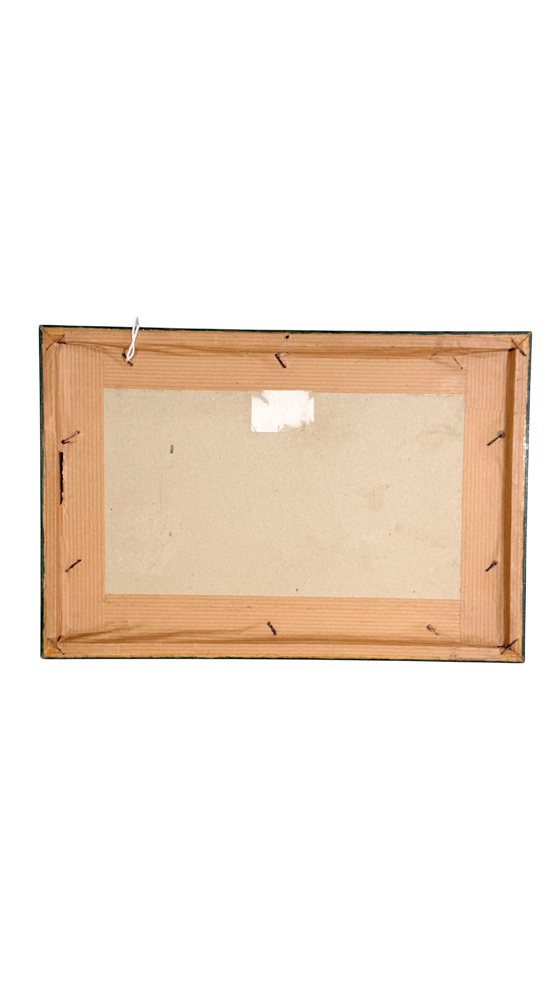 Housed in its original green-painted frame, the surface shows gentle age throughout: subtle craquelure, softened edges, and the kind of wear that confirms its life long before now. It is imperfect in the way only honest antique paintings are — with soul, depth, and story.