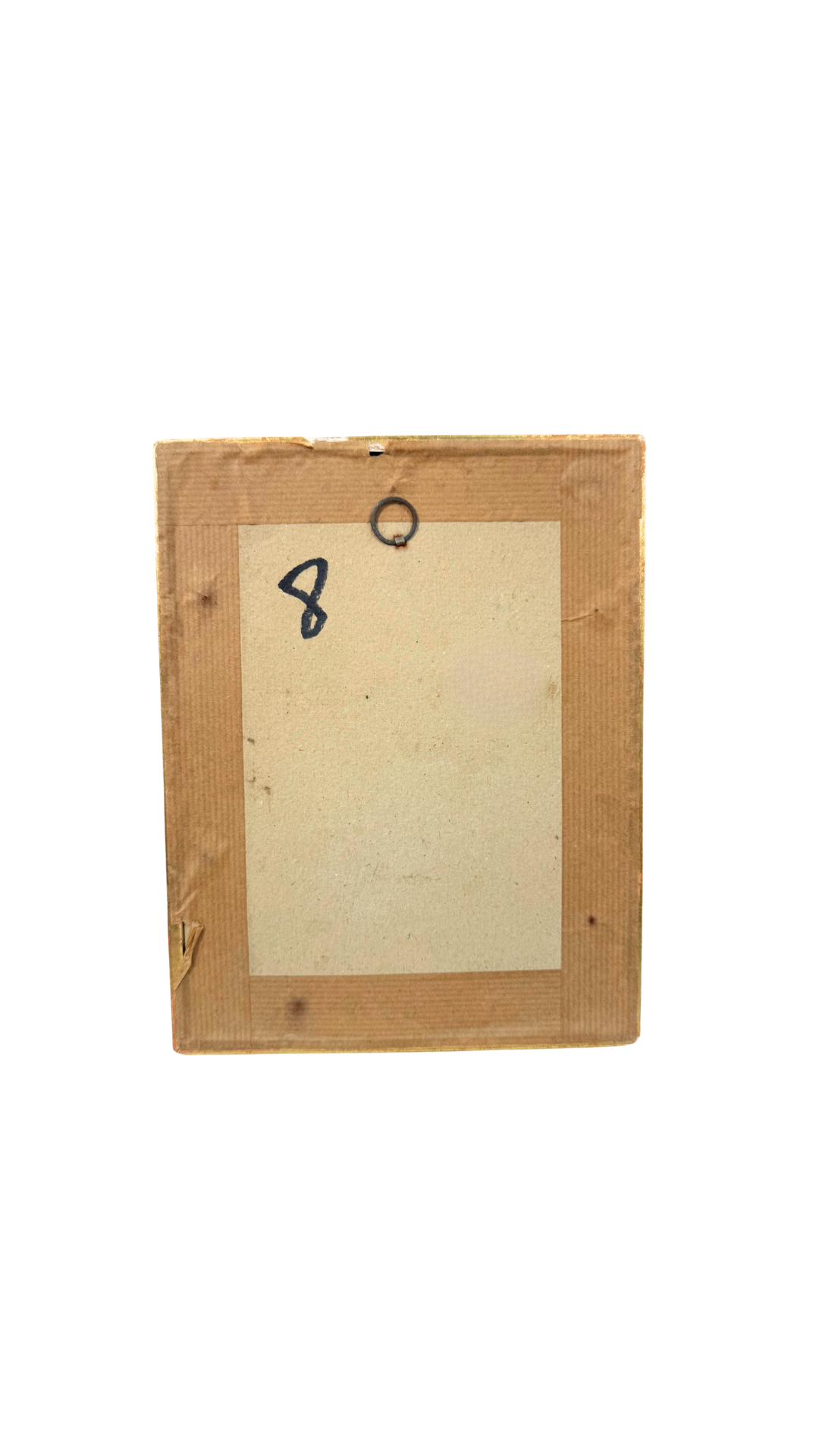This is a true miniature watercolor, framed in its original gilt wood frame with age-appropriate wear that enhances its charm. Perfect for layering on a bookshelf, tucking into a gallery wall, or adding a soft moment of nature to a bedside vignette.
