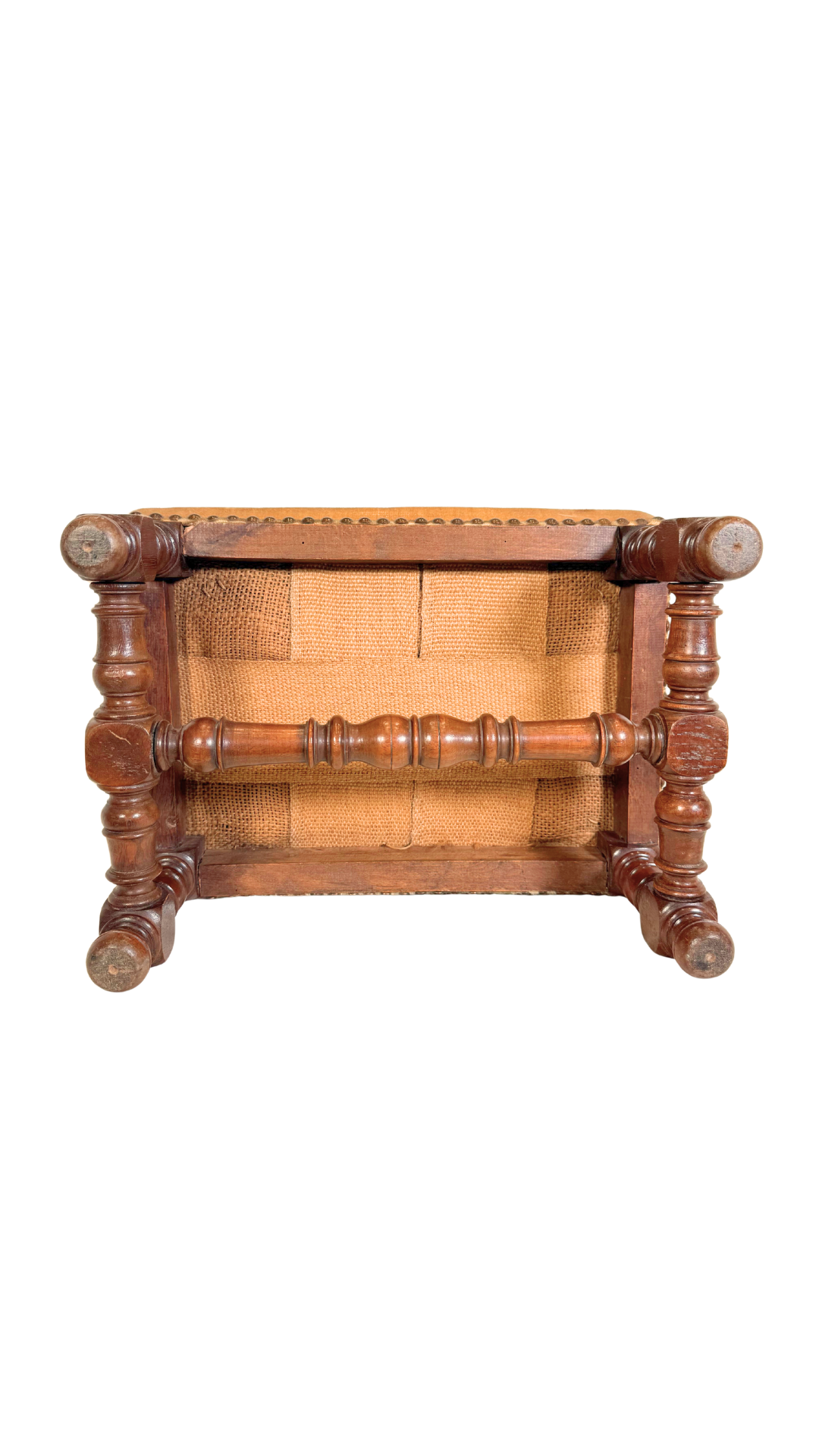 French Turned-Leg Upholstered Footstool