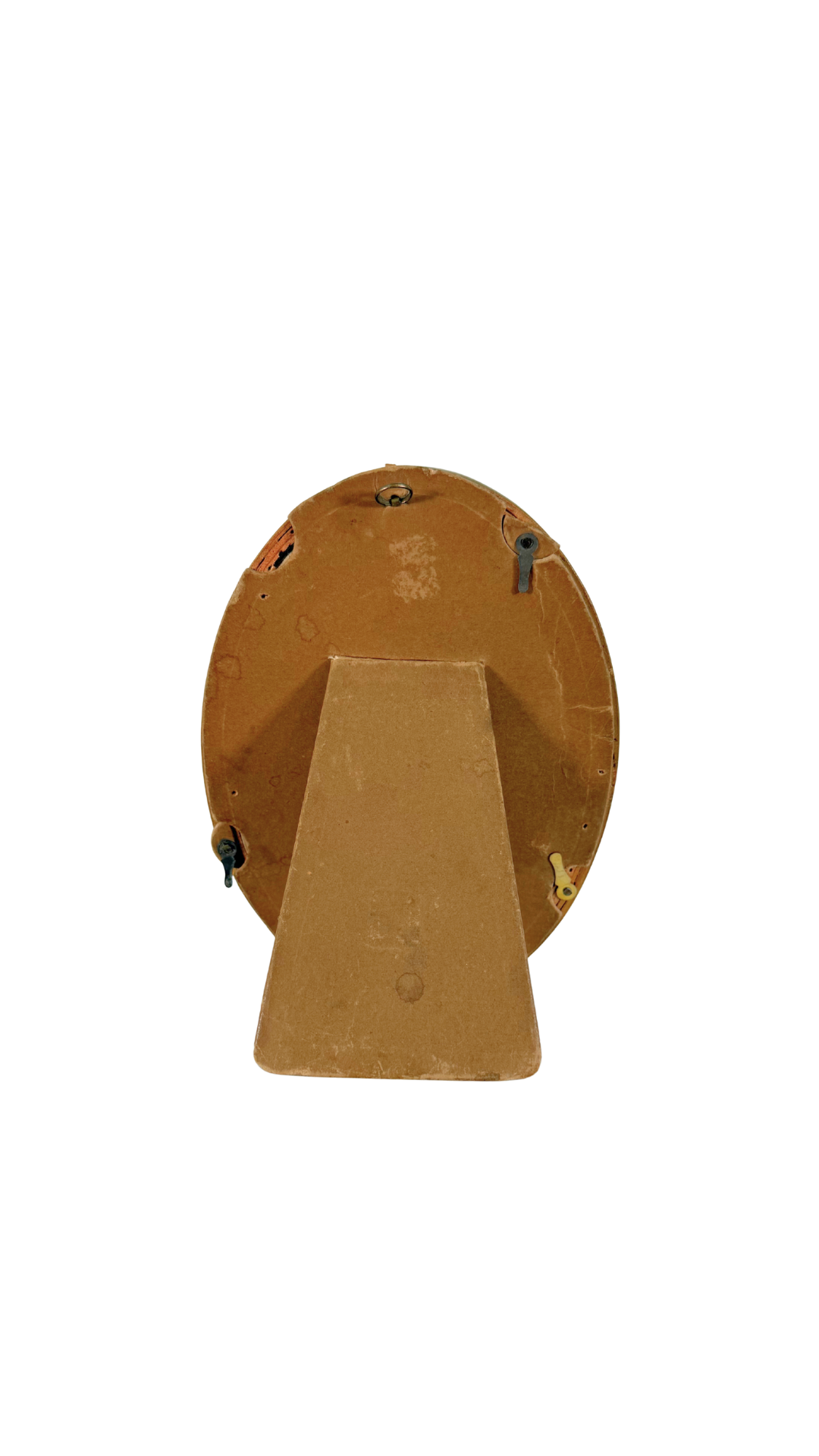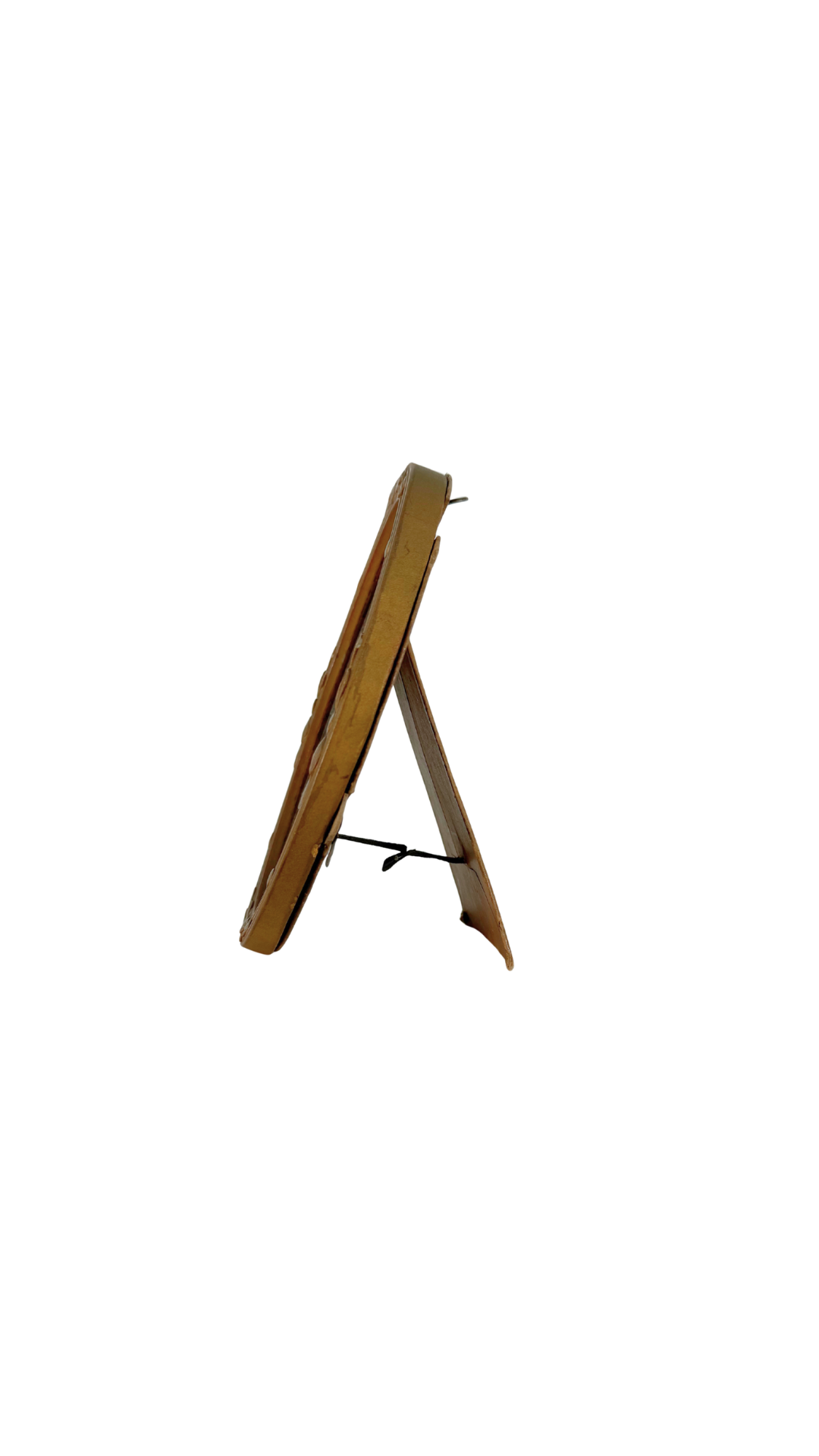 Presented in its original gilt gesso frame, with a softly burnished finish and subtle bead-and-leaf motif, the piece retains its period backing and easel stand — making it perfect for tabletop or vanity display.