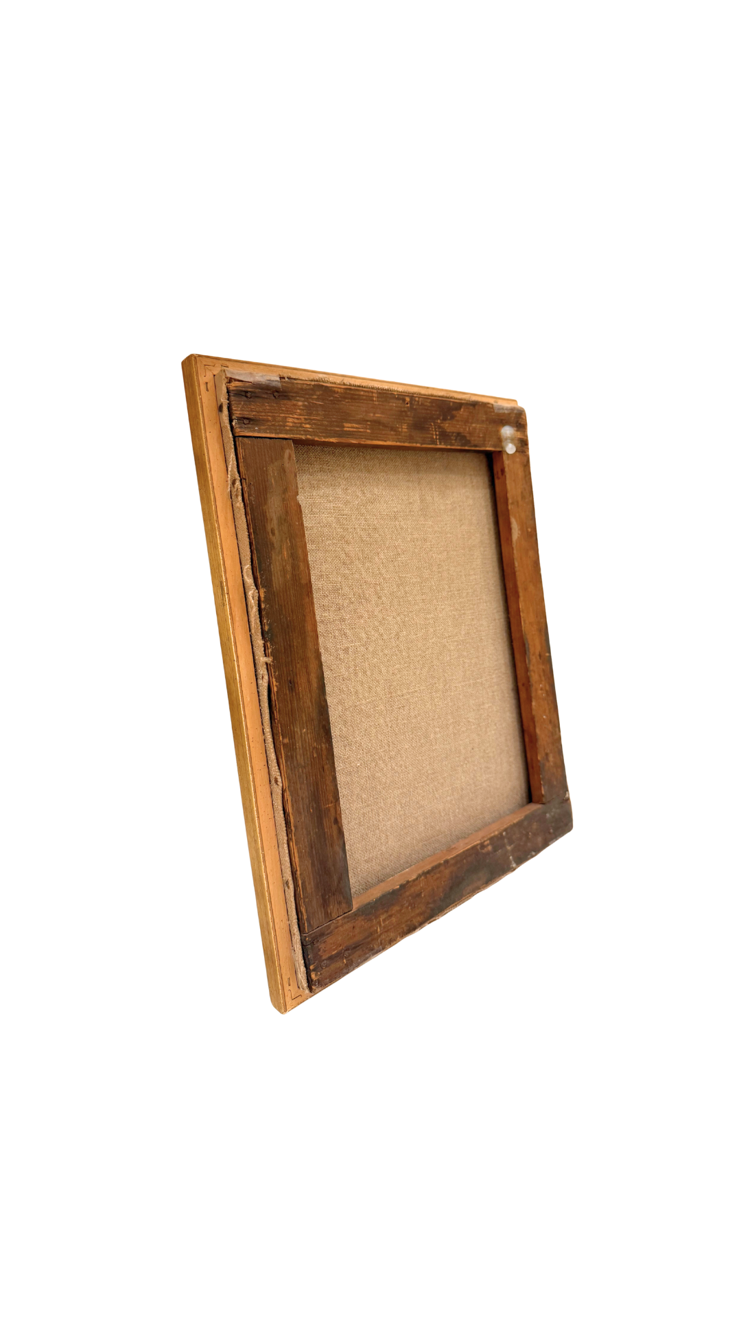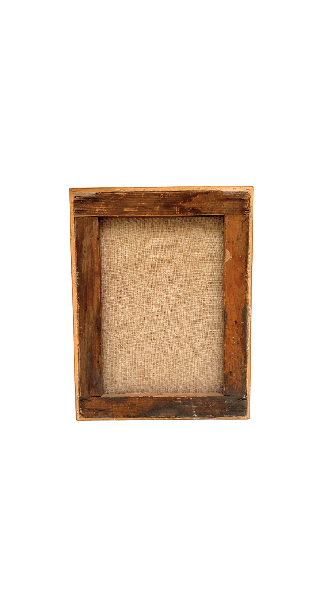 Presented in its original giltwood frame, the piece carries authentic age throughout—natural craquelure, gentle canvas wear, and a beautifully patinated frame that adds to its charm. The backside retains its untouched stretcher and original construction, further supporting its early-1900s origin.