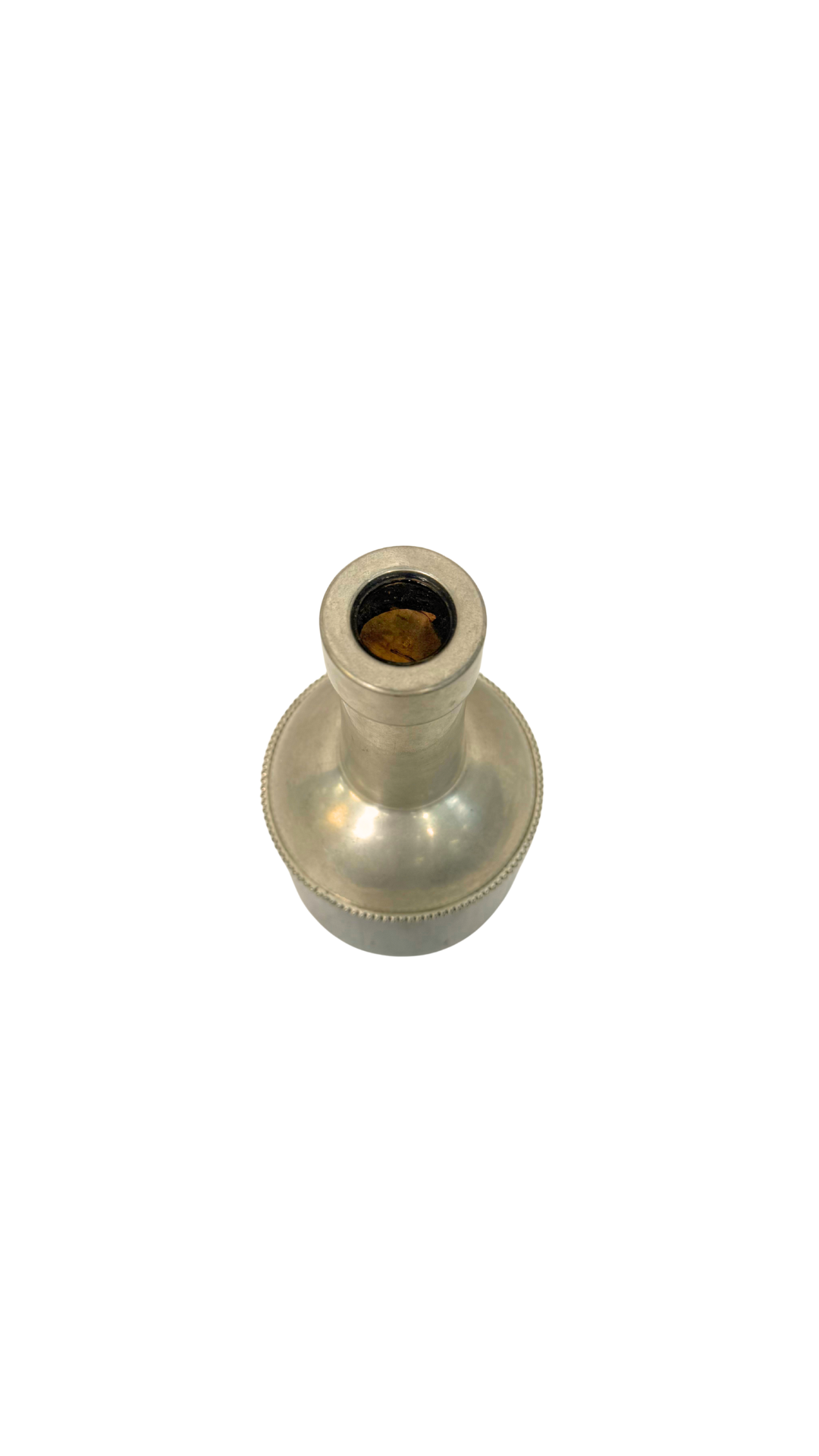 A striking French decanter crafted from deep green glass and finished with a pewter collar and beaded rim. Likely designed for whiskey or fine spirits, it captures the early 20th-century balance between function and refinement — handsome enough for display, yet practical in weight and form. The glass base bears its original France stamp, a quiet mark of craftsmanship from the interwar years.