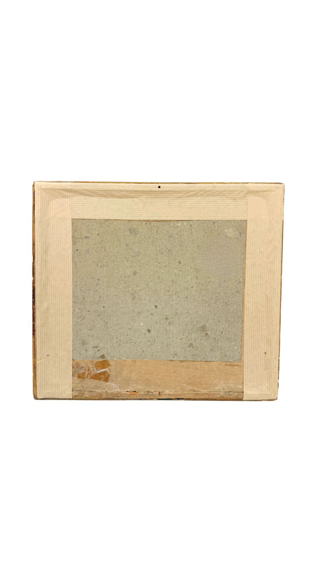 The work is housed under glass in its original giltwood frame, now showing the gentle wear and warmth of age, complemented by a cream mat that enhances the painting’s subtle hues. The artist’s faint signature can be seen in the lower corner, suggesting the work of a skilled hand from the French school of landscape painters.