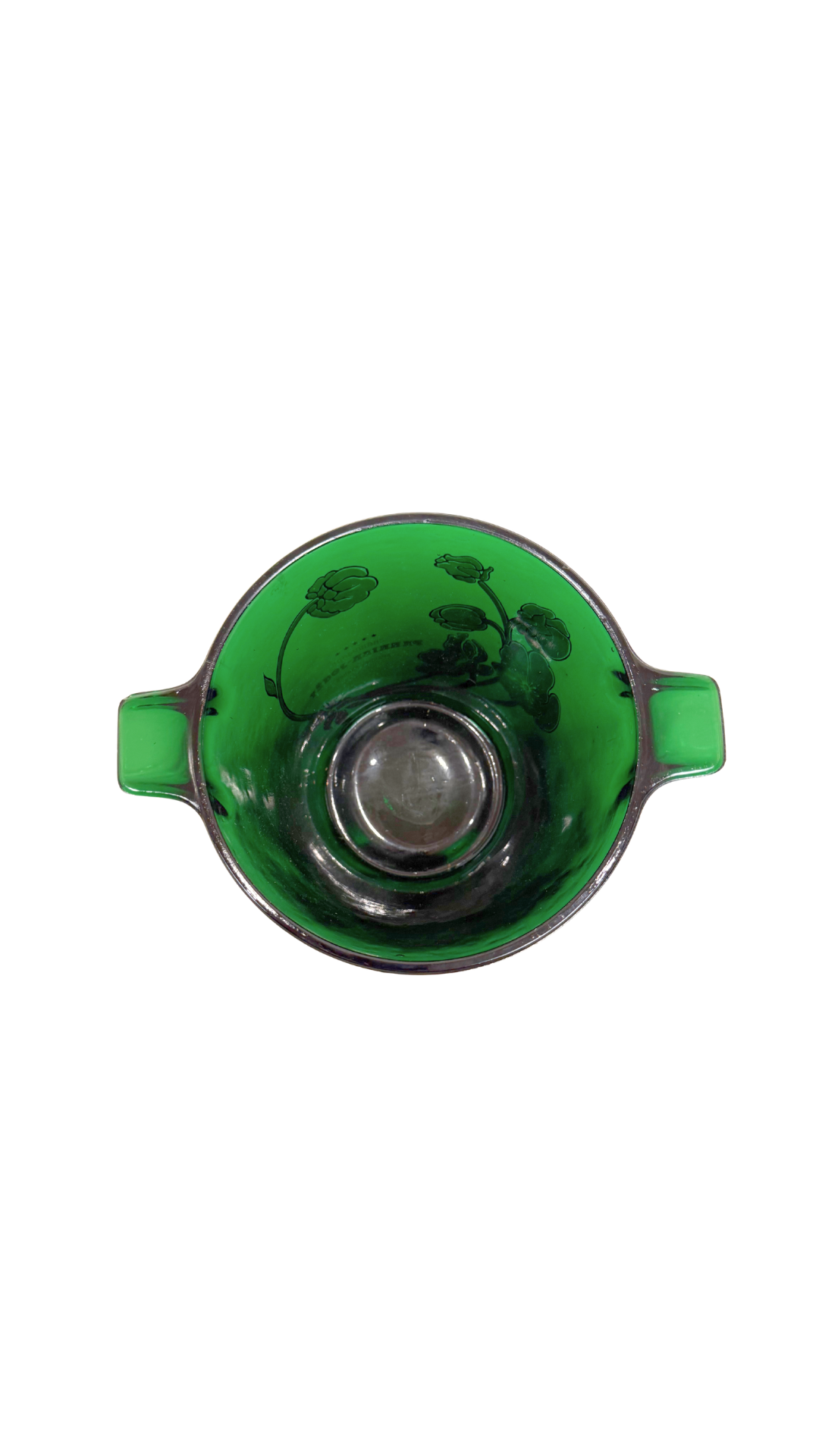 A collectible Perrier-Jouët champagne bucket in the brand’s iconic deep green glass, decorated with the signature anemone florals made famous by the Belle Époque bottles. Finished with side handles and the Epernay-France mark to the front, it carries the unmistakable presence of classic French entertaining.
