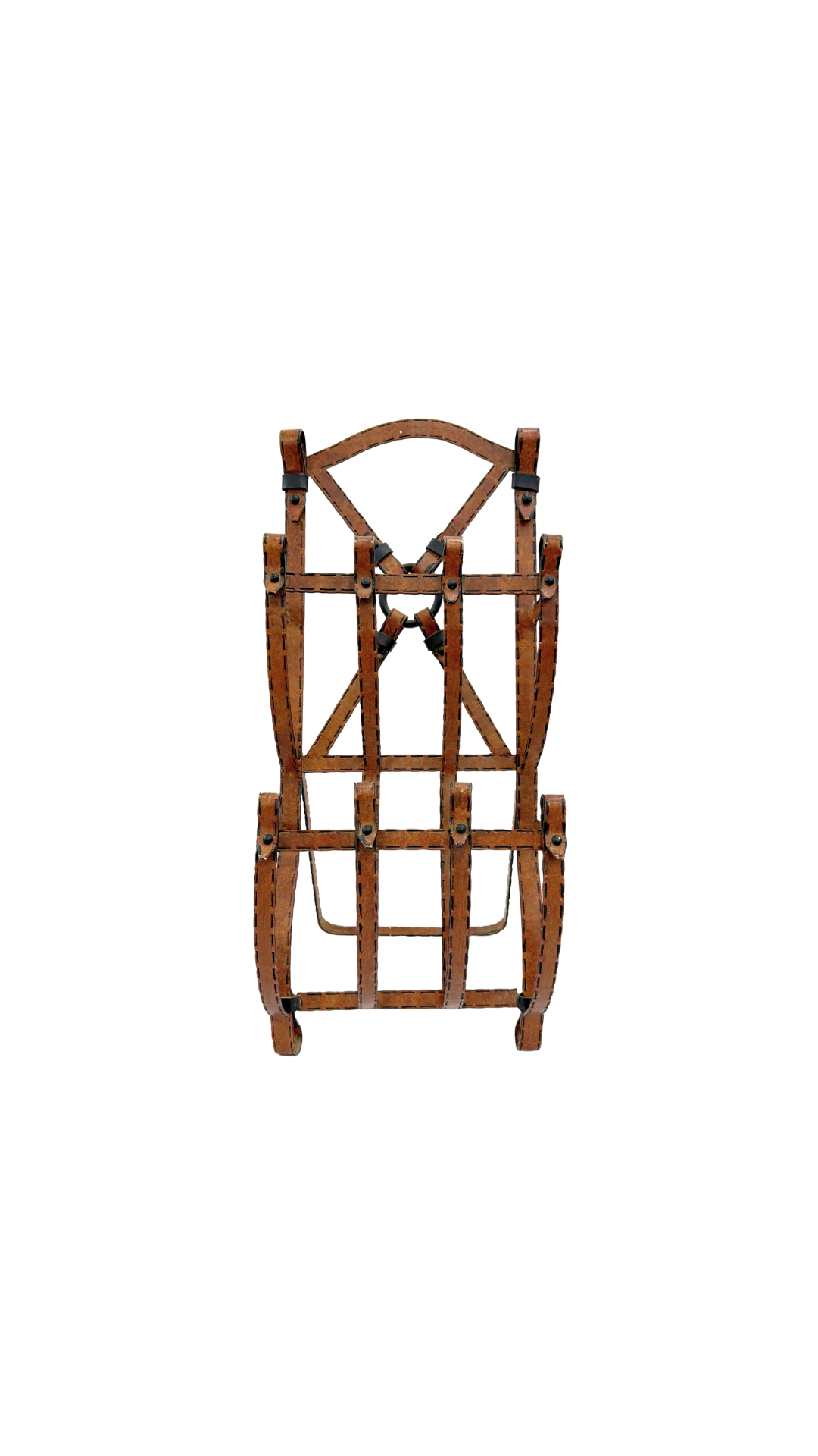 A striking interplay of strength and elegance, this sculptural magazine rack is attributed to Jacques Adnet, renowned for his visionary work at the intersection of modernism and French luxury. Crafted from hand-forged iron and designed to resemble stitched leather, the piece echoes the same saddle-stitched detailing that became iconic through Adnet's celebrated collaboration with Hermès in the 1950s.