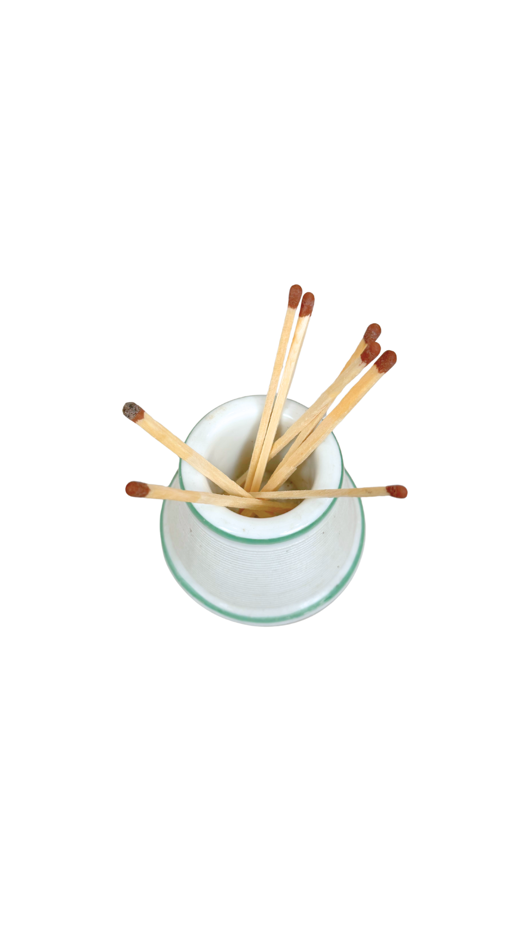 A classic French pyrogène match strike in creamy white faience, featuring fine horizontal ribbing and a softly flared silhouette. Designed for both storage and striking, these countertop pieces lived beside the hearth or kitchen range — practical objects elevated by simple form and texture.