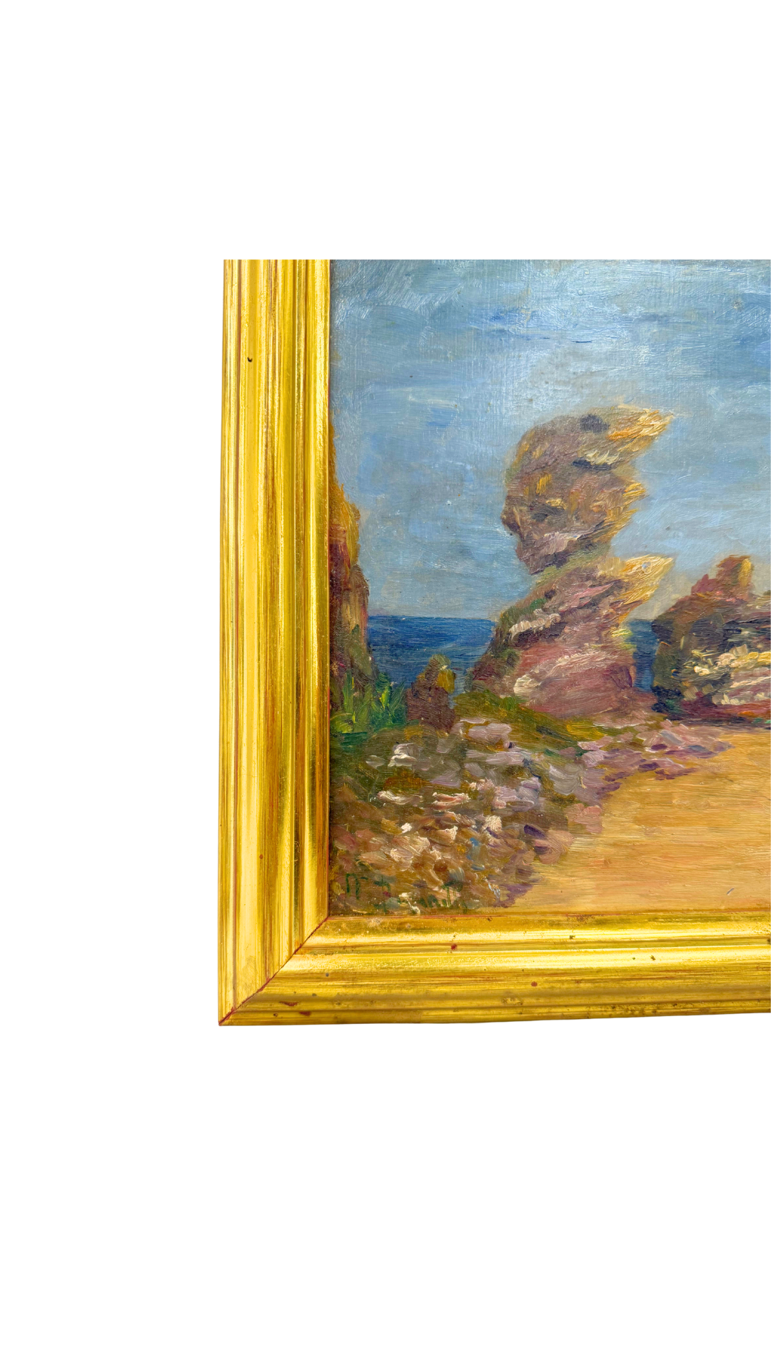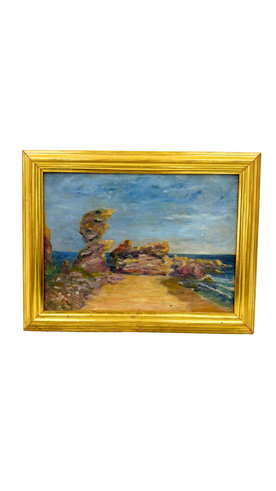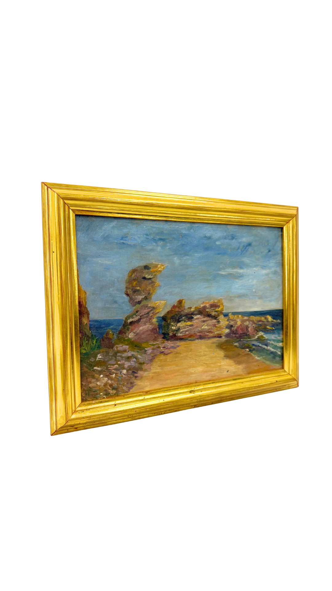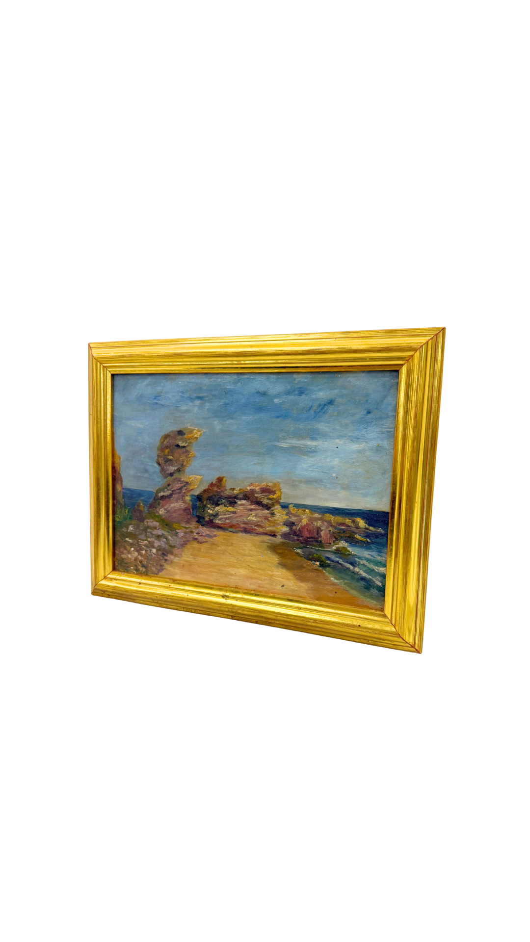 Set in a giltwood frame and signed/dated on the reverse (1956), this piece offers both drama and peace. Perfect for collectors of coastal works or those drawn to the rugged poetry of Provence.