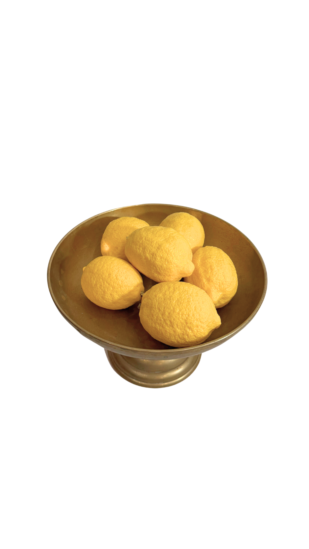 A beautifully time-worn vintage brass compote, sourced in Louisiana and crafted with that unmistakable old-world weight and warmth. The shallow bowl sits on a classic stepped pedestal, giving it a sculptural silhouette that feels refined yet quietly understated. Its surface shows the kind of subtle patina only age can create—soft darkened areas, light surface marks, and a mellowed golden tone that instantly brings character to any vignette.