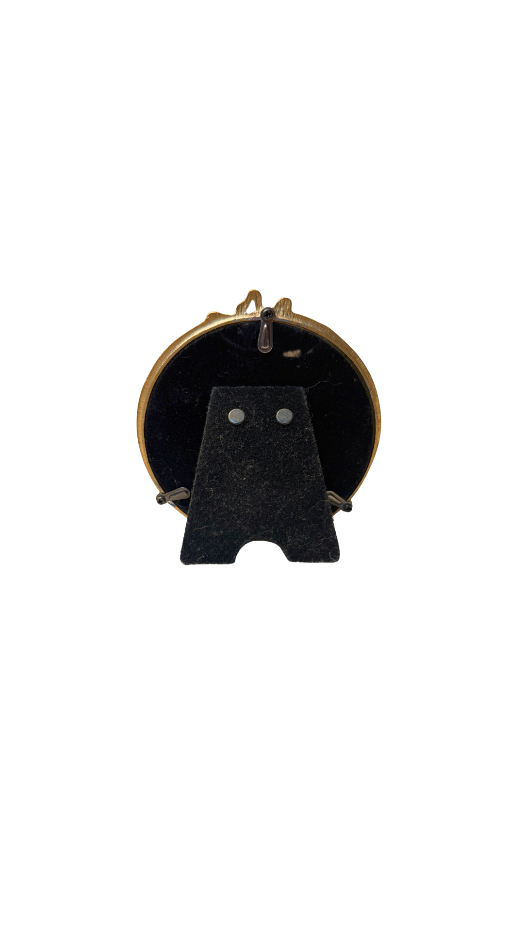 The easel back allows for tabletop display, perfect for a bedside table, writing desk, or layered into a moody vignette. The gold and plum combination feels collected, dramatic, and quietly luxurious.