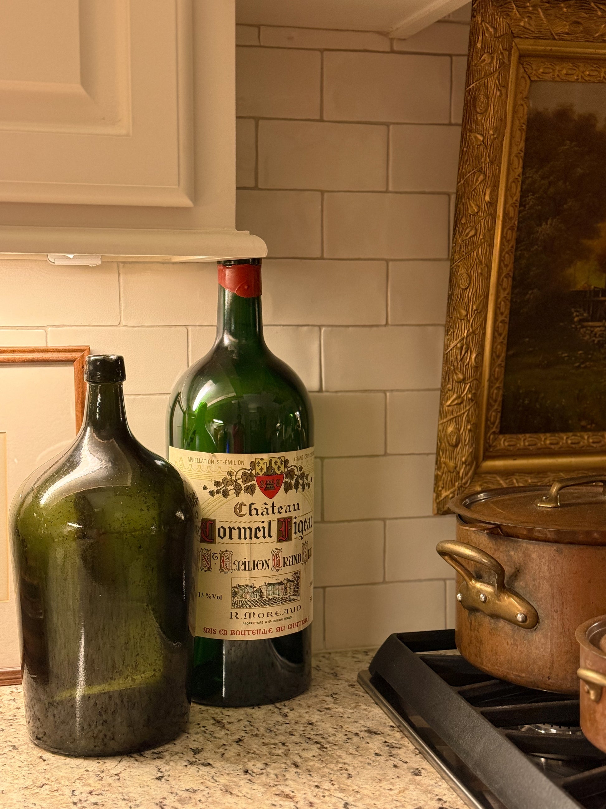 Extra large bottle! Great for bar-cart decor or kitchen styling.